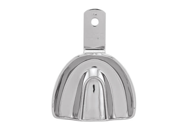 Unlike perforated trays, which have small holes to allow the impression material to grip the tray better, the non-perforated design of this tray provides a smooth surface that prevents the impression material from sticking to the tray. This feature can be particularly beneficial in certain scenarios where a cleaner and more controlled impression is necessary. For example, non-perforated trays are often used with materials that are designed to stay in place without the need for perforations to hold them.