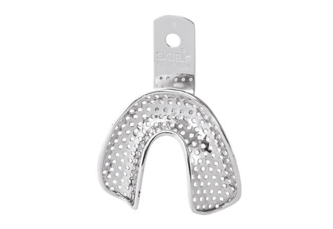 An Impression Tray Edentulous Perforated Lower Small is specifically designed to capture the contours of the lower edentulous arch. These trays are used for patients who do not have natural teeth, or have lost them due to injury, disease, or age. The small size of the tray is tailored for patients with a smaller mouth or jaw structure, ensuring comfort during the impression-taking procedure. The perforations in the tray are an important feature, as they help the impression material to grip the tray more effectively, ensuring that it does not move or shift during the procedure.